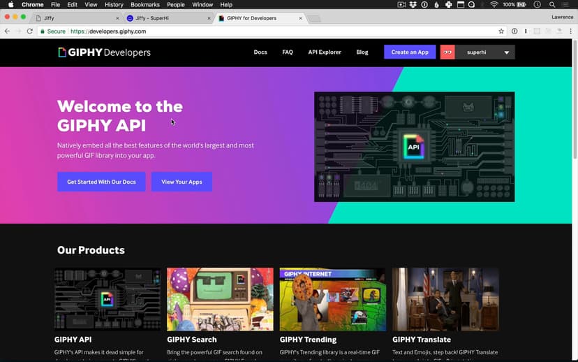 In our second week we will build a site that lets us search for Gifs using Giphy’s API. We’ll talk about APIs and why they’re so great and how we can use Ajax to fetch data. We’ll also explore some new CSS Grid layout and flexbox tricks.