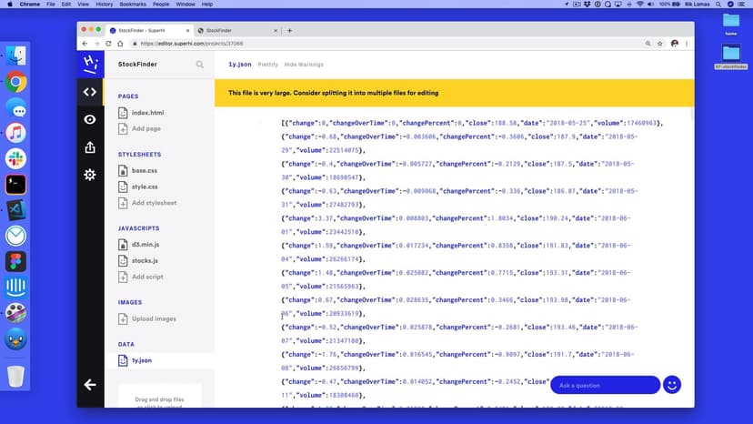 Previously, all the data used has been static – we only see changes to our designs when we change our data – but in this project, we add in live data that can change based on real-life information such as Apple's stock price.
