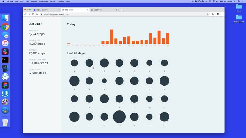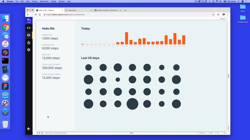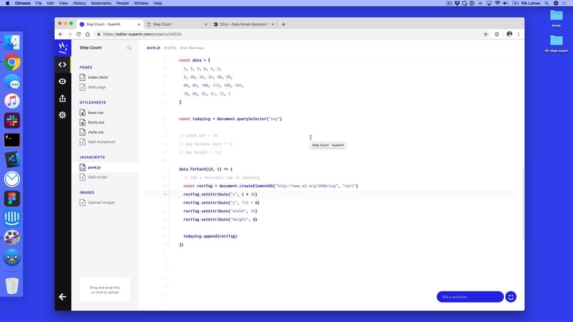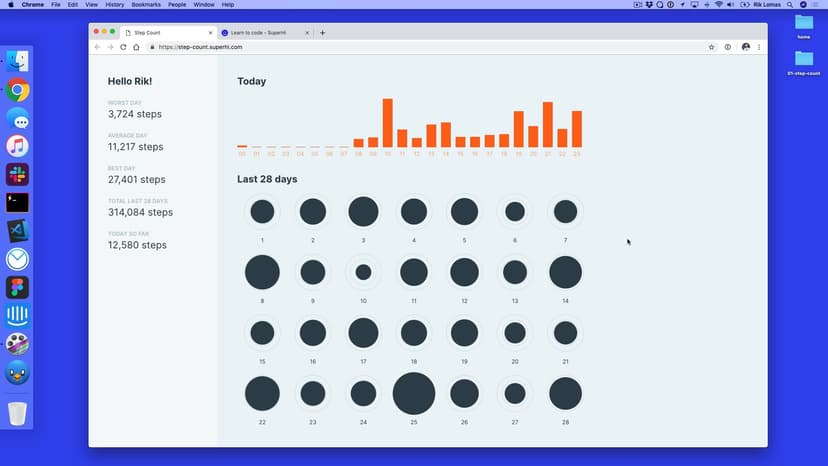 In the first part of the course, we'll lay out our Step Count project using HTML and CSS, plus introduce SVG tags to draw our data visualizations.