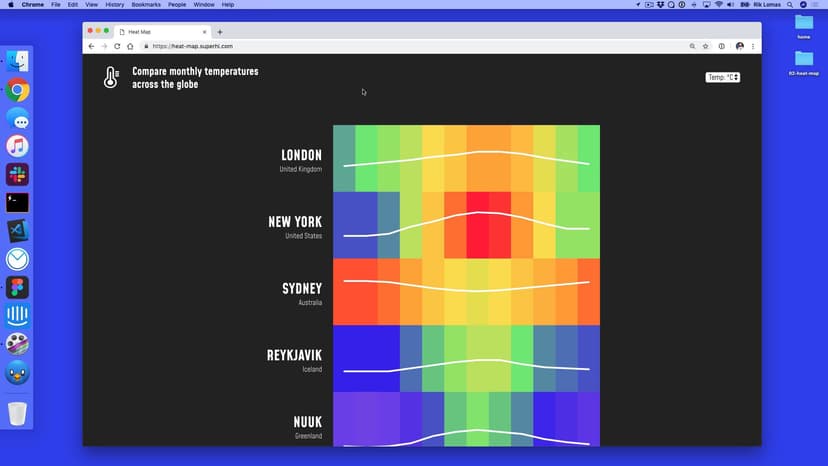 In Heat Map, we discuss how to take more complex data and turn it into a vibrant visualization featuring hover effects, a temperature scale changer and our first look at line graphs.