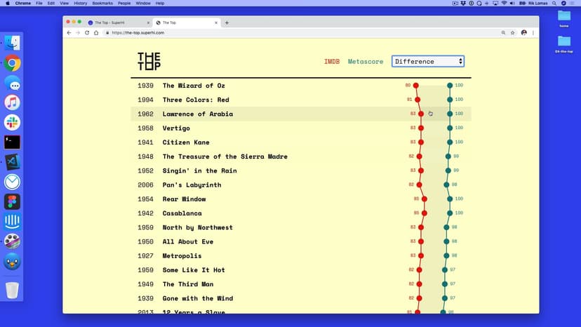 After a debate within the SuperHi team, we test to see if movies that are popular with fans correlate with popularity with the critics by using scores from fan-scored IMDb and critic-scored Metacritic in week 4's project, The Top.