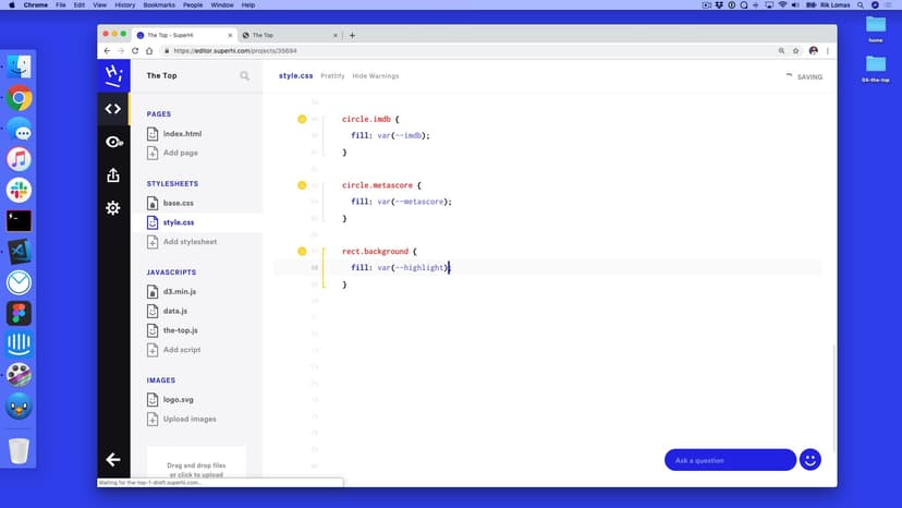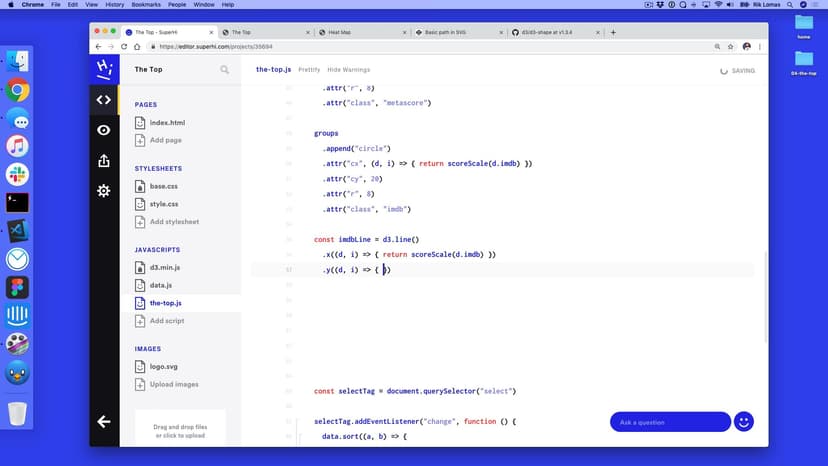In the second part of The Top, we add in line and area shapes to make our visualization clearer, and add in labels for our scores. We also discuss responsive design and media queries to make our designs suitable for any device.