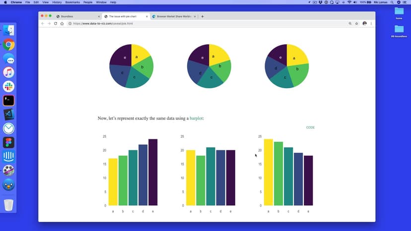 With D3, we can quickly add in more complex shapes such as arcs and pies. In the Boundless project, we add a pie chart that updates every half-second with an interval loop.