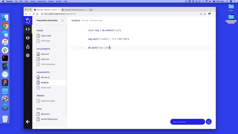 Using the right tool for the right job! Using D3, a Javascript library made for simplifying data visualizations, we'll save time and energy making our designs.