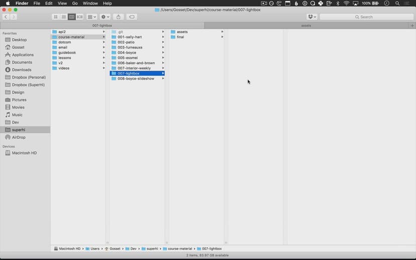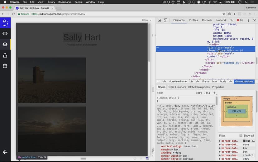 We remix our Sally Hart portfolio site from Chapter 1 by creating a lightbox modal effect with Javascript and jQuery.