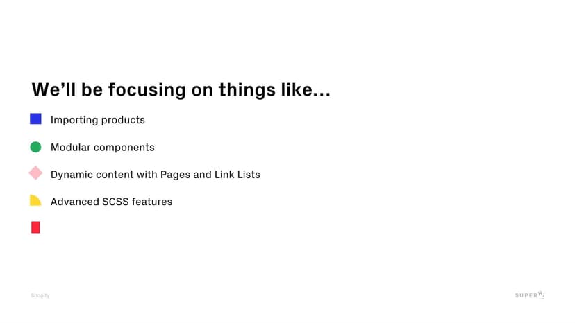In this course we'll cover the basics of Shopify and how to get started with designing and building completely custom e-commerce websites using HTML, CSS, Sass, Javascript and Shopify's templating language, Liquid. It also covers everything you need to know about theming.