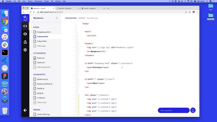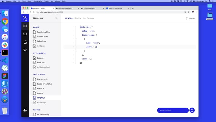 This is an intermediate course when it comes to page transitions, though we would recommend basic knowledge of HTML, CSS, and a bit of Javascript before starting. If you don’t have this just yet, trying our Learn To Code Now book, or taking either our Foundation HTML, CSS + JS course or our Javascript for Designers course will help you feel as prepared as possible.