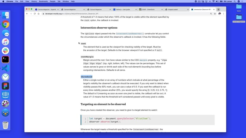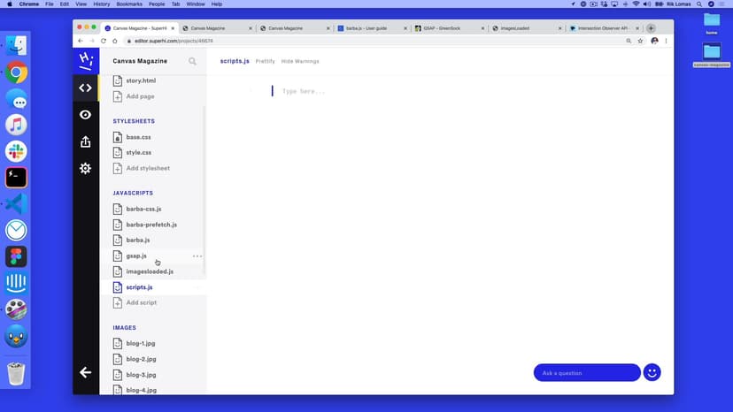 In Canvas Magazine, we add in more complex page transitions using GSAP timelines and add in more Javascript plugins such as imagesLoaded. We also talk about how to make your current JS code work with Barba.
