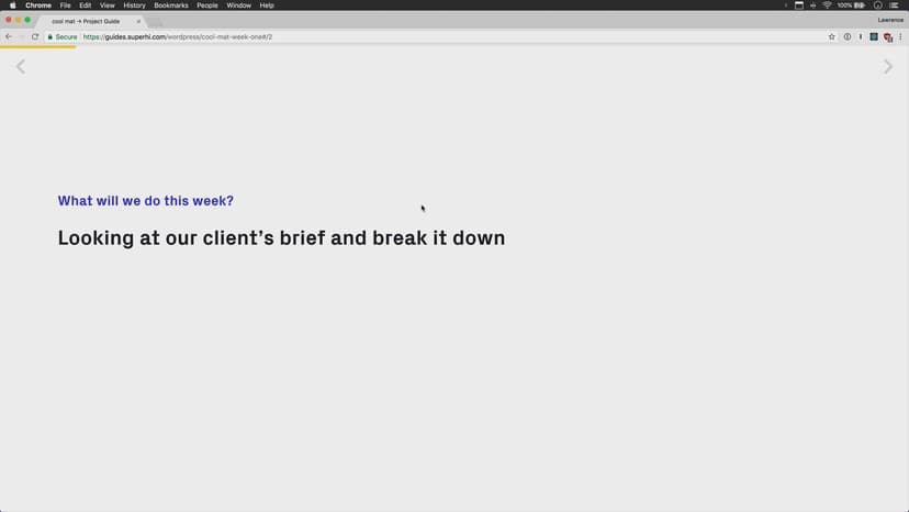 For our first week we’ll start by looking at cool mat’s brief, translating it into a list of features that we can turn into code. We’ll then learn a bit about the web and how WordPress works before getting ourselves up and running with it.